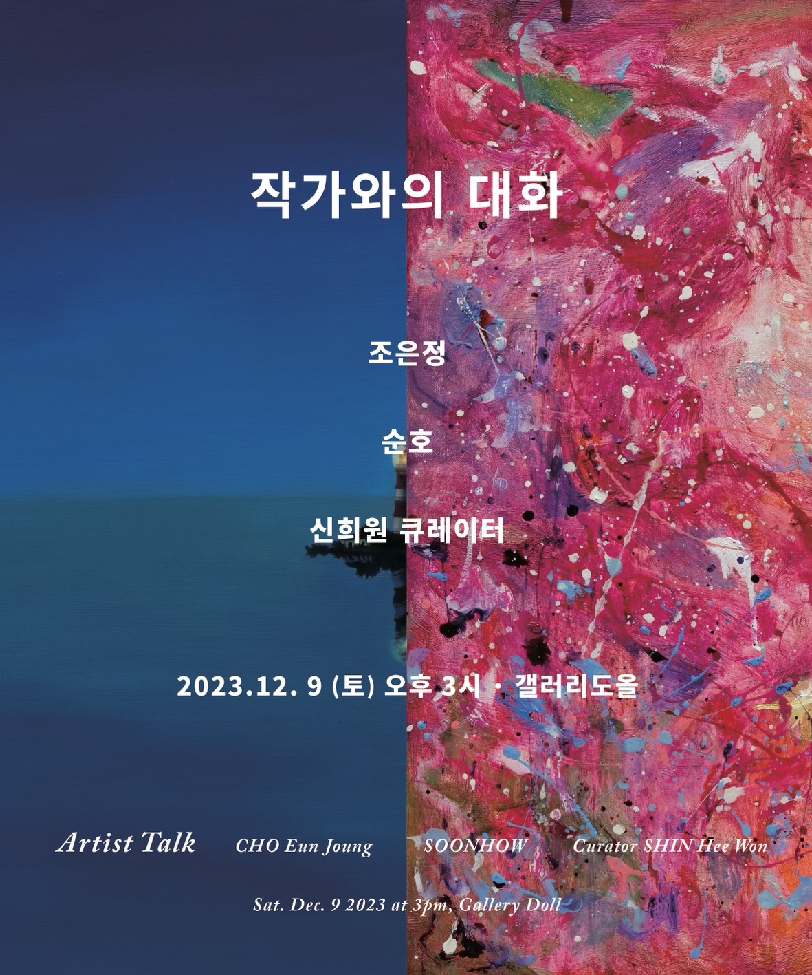 The conversation will be held between artists Soonhow and Cho Eun-Joung and Gallery Doll curator Shin Hee-won, allowing you to experience the diverse world of the artist's work in more detail.